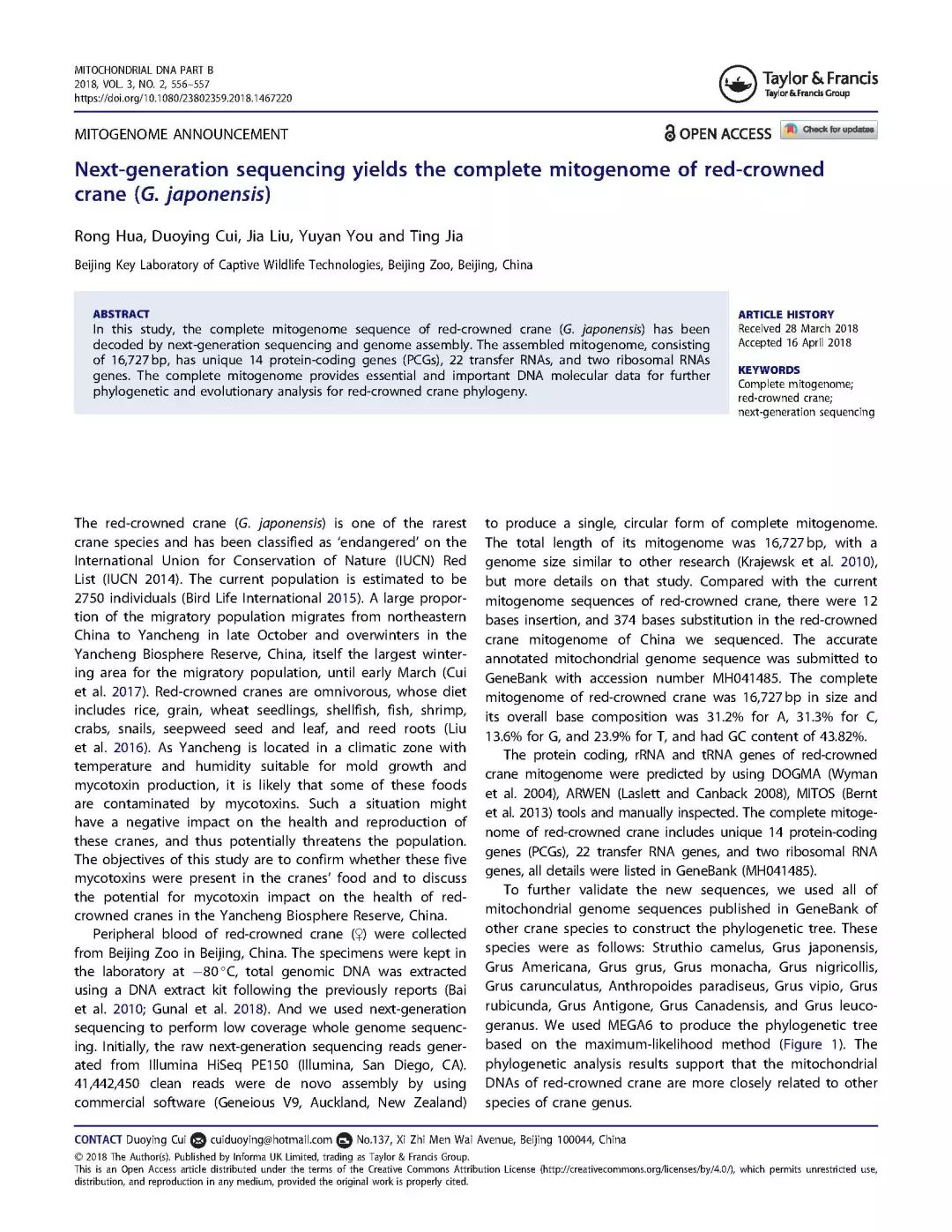 丹顶鹤(Grus japonensis)是国家Ⅰ级重点保护野生动物,IUCN 濒危物种(EN),野外种群数量仅存2600只左右(崔多英等 2017)。根据2015至2017年对江苏盐城丹顶鹤越冬种群数量调查,丹顶鹤西部迁徙种群的数量呈逐年下降趋势,原因尚不得而知。中国动物园有圈养丹顶鹤1248只(崔多英等 2017),分布在中国动物园协会所属62家会员单位。开展濒危物种重引入项目是恢复、壮大野生丹顶鹤种群的有效措施,将为拯救濒危物种——丹顶鹤提供有益的实践经验和科学数据。