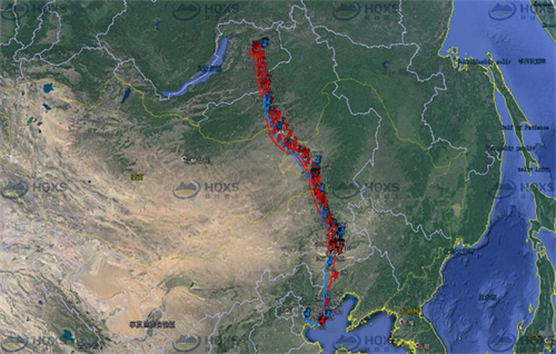 013(蓝)、016(红)号灰鹤迁徙路线图